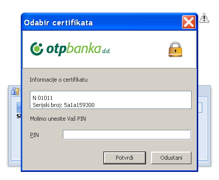 | Unesite PIN smart kartice kako bi ste ušli u sučelje izdavanja