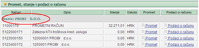 ili u gornjem desnom dijelu zaslona eLEMENT@ internet bankarstva (slika dole)