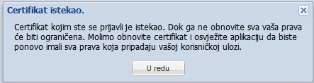 | U ovom slučaju potrebno je odabrati opciju "U redu" da bi se nastavio redovan slijed obnove certifikata kako je to opisano u nastavku ove upute. | ||