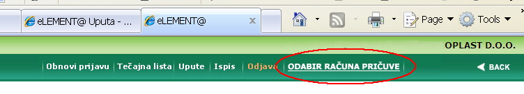 Svi stanoupravitelji koji posjeduju eLEMENT@-u, u mogućnosti su pristupiti računima SZP-a, koristiti preglede te izvršavati financijske transakcije. Za pristup podacima o SZP računu (računima) vrši se pomoću transakcije "Odabir računa pričuve" u lijevom okviru zaslonu eLEMENT@-e (slika dole)