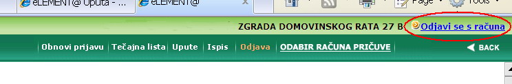 Opisana promjena automatski se reflektira na gornji desni zaslon gdje je stalno vidljiv aktivni SZP račun po kojem se radi, kao i opcija odjave. Opcija odjave automatizmom vraća stanoupravitelja na rad sa vlastitim računima. (slika dole)