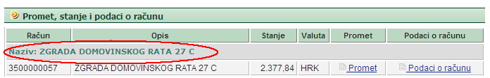Kada je stanoupravitelj prijavljen kao SZP račun, u transakciji "Stanje i promet računa" u polju Račun" automatizmom se poziva broj SZP računa te je moguć uvid u promet računa i osnovne podatke o računu. U ovom slučaju nisu vidljivi vlastiti osnovni računi stanoupravitelja. (slika dole)