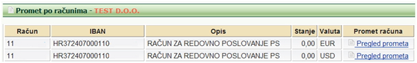| Transakcija omogućava pregled prometa po ponuđenim računima. Ulazak u zaslon ispisa poziva se opcijom "Promet računa" | ||