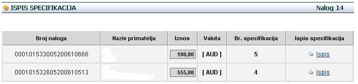 Ispis specifikacije plaćanja Sve specifikacije plaćanja u inozemstvo možete tiskati na formatu A4 sa opcijom "Ispis".
