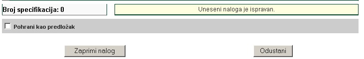 | 17 | Mjesto i datum predaje naloga: | Mjesto i datum predaje naloga - automatizmom se upisuje tekući datum. |
