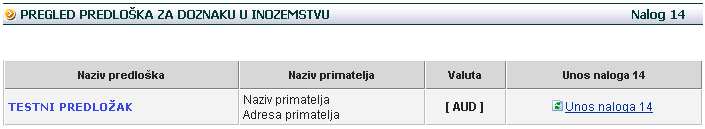 | Pohrana unesenog naloga 14 u predloške: | ||