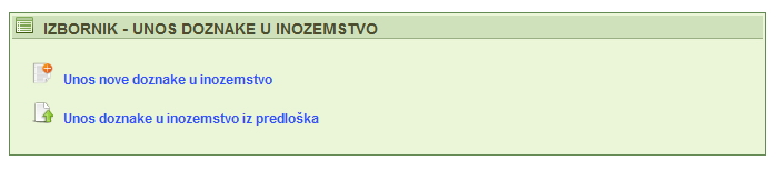 | Odabirom transakcije "Devizna doznaka" na zaslonu se prikazuju dva moguća načina unosa, tj. unos potpuno novog deviznog platnog naloga ili unos iz pohranjenog predloška. | |||