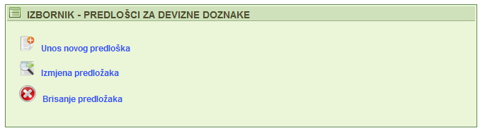 | U glavnom izborniku rada sa predlošcima moguće je odabrati tri transakcije kao što je to prikazano na slici iznad (Slika 05). Ovisno o vrsti radnje potrebno je odabrati jednu od ponuđenih transakcija. | |||